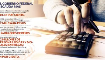 El Gobierno de Enrique Peña Nieto logró lo que parecía imposible: cargarle aún más la mano a la base cautiva de contribuyentes. De un promedio anual (per cápita) de 11 mil 244.14, pasó a 22 mil 654.04 pesos. Si se compara el cierre de 2012 y 2016, es un aumento del 101.47 por ciento.