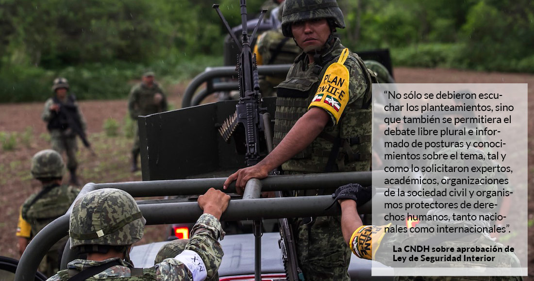 Ciudad de México, (SinEmbargo).– La Comisión Nacional de Derechos Humanos (CNDH) informó que se encuentra preparando un estudio de acción de inconstitucionalidad de la Ley de Seguridad Interior y exhortó el Ejecutivo Federal para que formule observaciones a la norma.