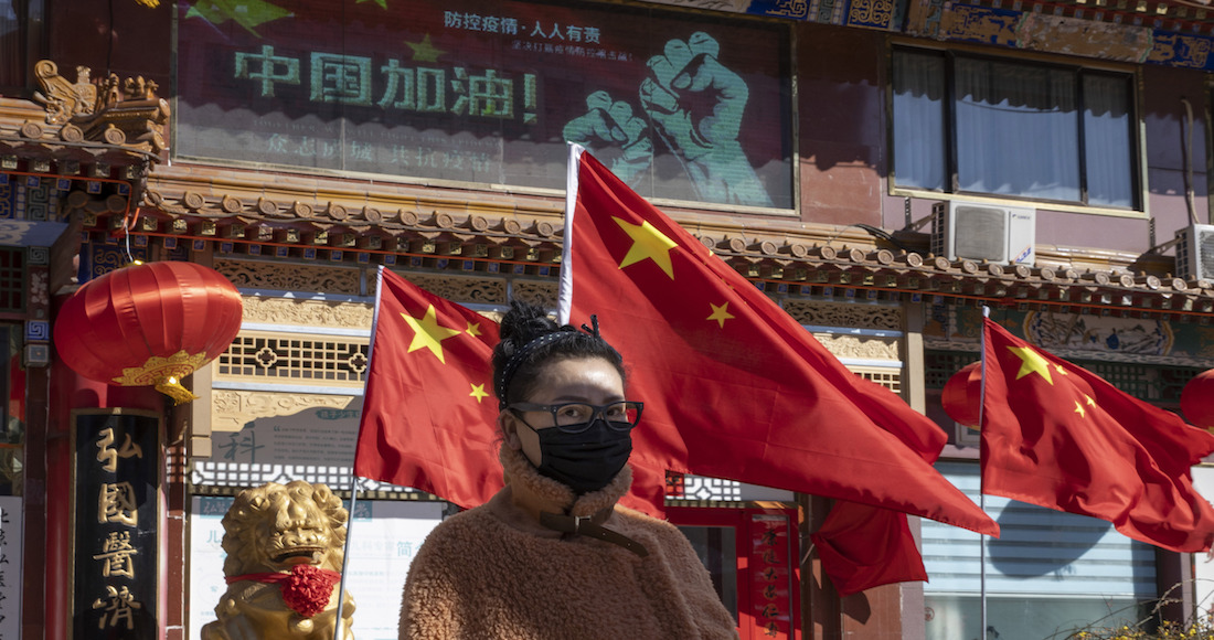 Una mujer con mascarilla camina cerca de un letrero que dice “¡Vamos, China!” afuera del hospital de medicina tradicional en Beijing. Foto: Ng Han Guan, AP