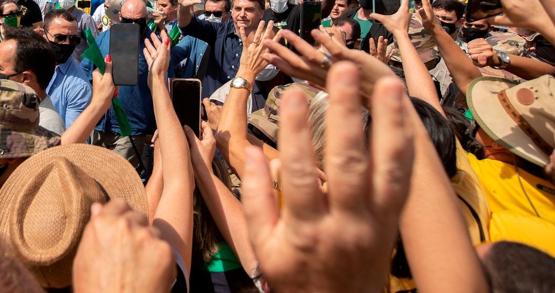 El presidente de Brasil, Jair Bolsonaro, fue registrado este domingo, durante una multitudinaria reunión con simpatizantes. Foto: EFE/Joédson Alves