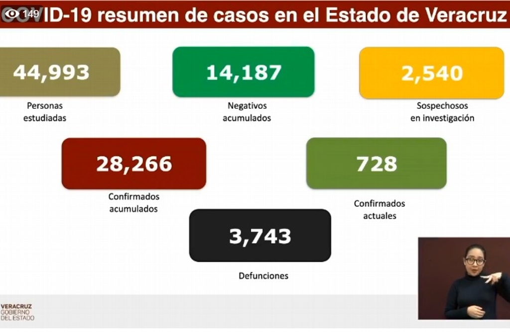 Este lunes 31 de agosto la Secretaría de Salud de Veracruz reportó 18 nuevas muertes por COVID-19, con lo que ya suman tres mil 743 fallecimientos en la entidad desde el inicio de la epidemia.