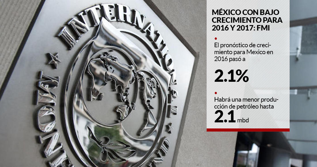 En México, la reducción en el pronóstico de crecimiento irá acompañado de una menor producción de petróleo hasta 2.1 millones de barriles diarios (mbd) al cierre del presente año, menores a los 2.5 mbd que se produjeron en 2015, y espera un ligero repunte hasta 2.3 mbd en 2017. En tanto, el promedio mundial de producción de crudo se estima en 3.1 mbd para 2016 y un aumento hasta 3.4 mbd en 2017.