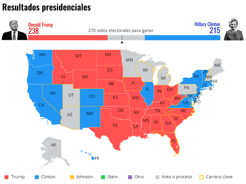 ASÍ VA EL CONTEO DE VOTOS EN LA JORNADA ELECTORAL DE ESTADOS UNIDOS