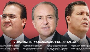 Veracruz, San Luis Potosí y Guanajuato encabezan la lista de entidades con los montos más observados por la Auditoría Superior de la Federación en su segunda entrega de la Cuenta Pública 2016, en la que fiscalizó 5 mil 651 millones de pesos de recursos federales enviados a todos los estados y municipios.