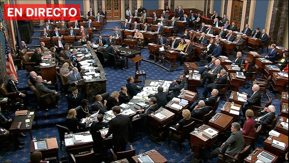 Los senadores, votando el martes por la noche las normas del juicio. En vídeo, el segundo día del 'impeachment' a Trump en directo. FOTO: AP | VÍDEO: REUTERS