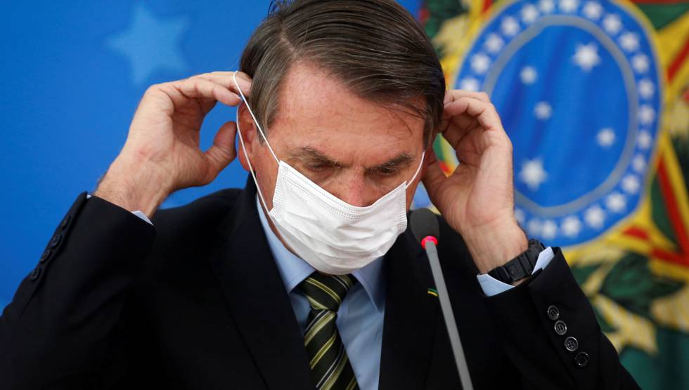 Jair Bolsonaro con una mascarilla durante una rueda de prensa. UESLEI MARCELINO REUTERS