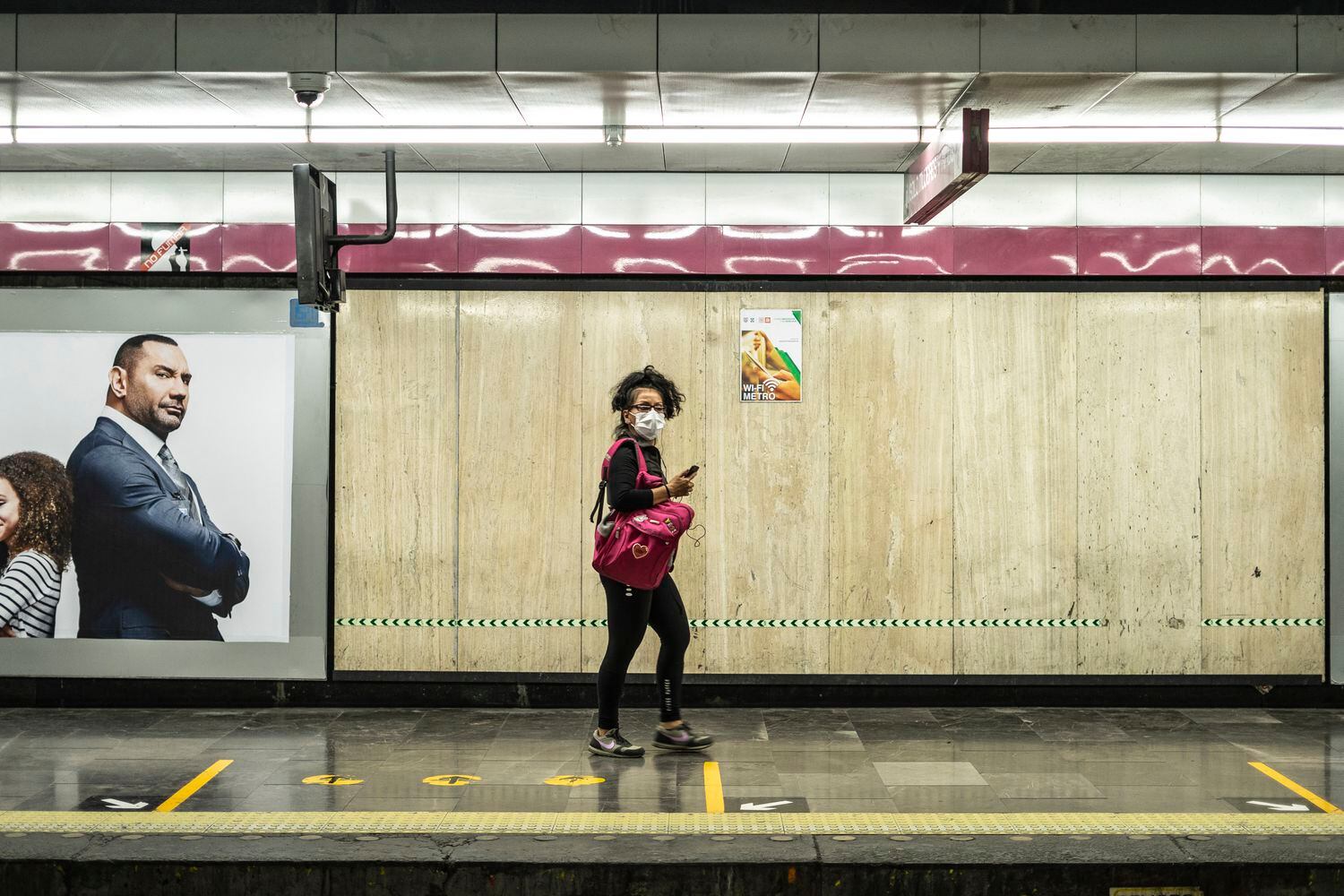 Una mujer usa una mascarilla en una estación del Metro de Ciudad de México.