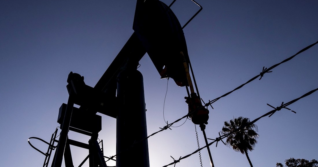 Una bomba extractiva de petróleo continúa operando en medio de la pandemia de coronavirus en Signal Hill, California. Foto: EFE, EPA, ETIENNE LAURENT.